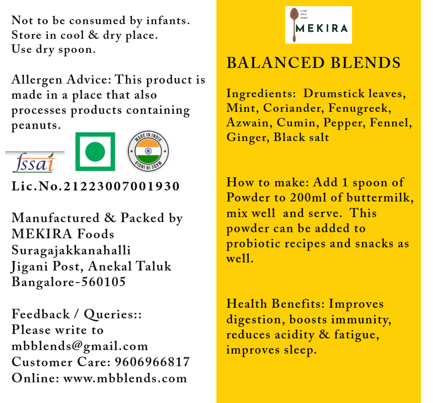 A freshly made Buttermilk mix powder - contains 10 healthy ingredients - Delivered within and outside India