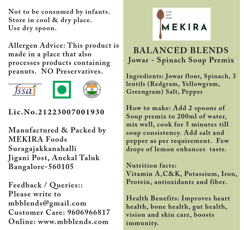 100% Natural Jowar and Spinach Soup Premix Powder - Serves 25 bowls - Plant Powered Wellness - Delivered within and outside India