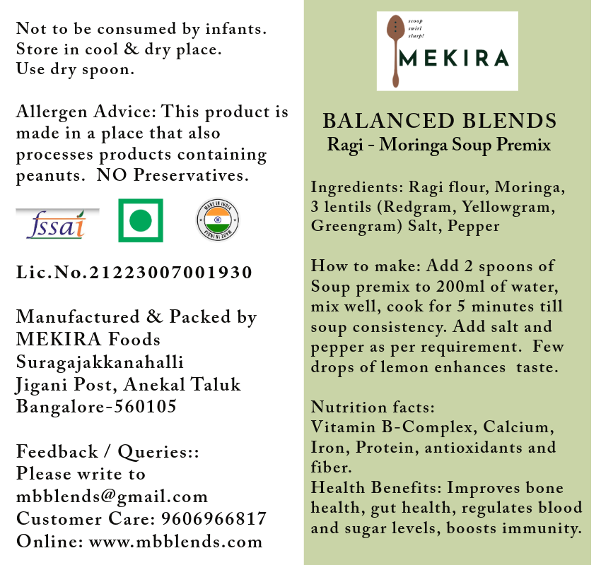 100% Natural Ragi and Moringa Soup Premix Powder - Serves 25 bowls - Plant Powered Wellness - Delivered within and outside India