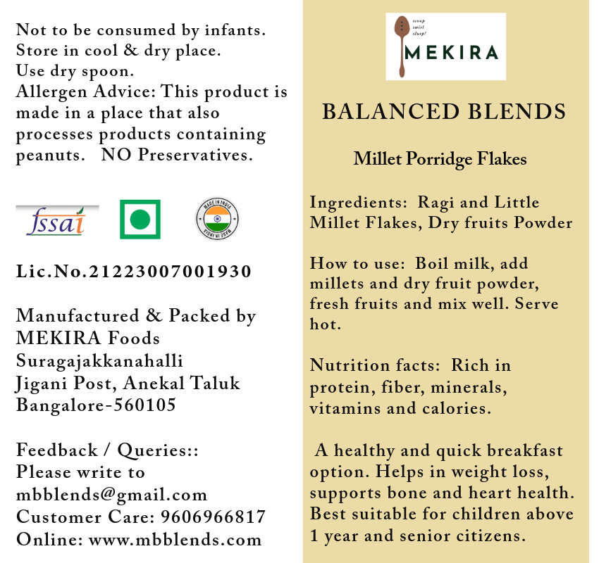 Finger Millet (Ragi) and Little Millet (Saame) Flakes - Fresh from Mill - With Dryfruits Protein Powder - Delivery within India