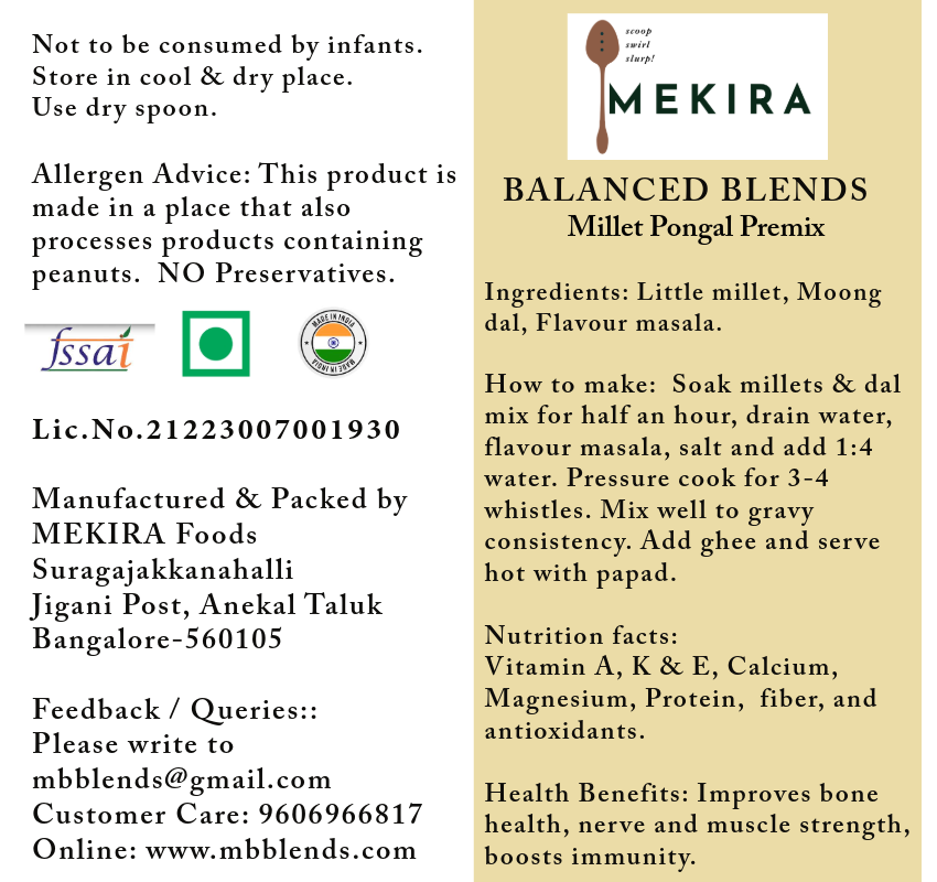 Ready to cook Millet Pongal Premix - With Pongal Masala sachet - Delivery within and outside of India