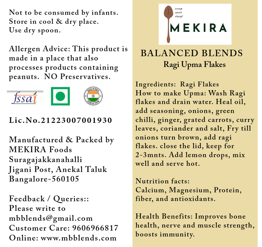 Finger millet (Ragi) Flakes for Upma recipe - Fresh from Mill - Delivery within India